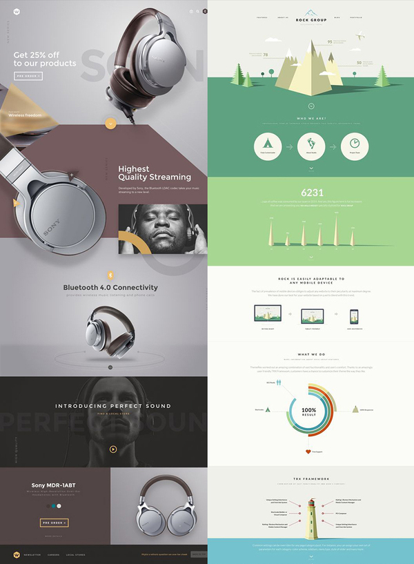 左图2:明快、对比强烈的色块分别置于画面的左右侧,让用户的视线跟着这些色块进行移动,既活跃了画面,又丰富了整体效果。