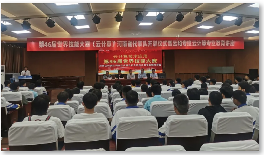 9月28 日,第46届世界技能大赛(云计算)河南省代表队开训仪式暨云和专班云计算专业教育讲座在河南经济贸易技师学院举行。