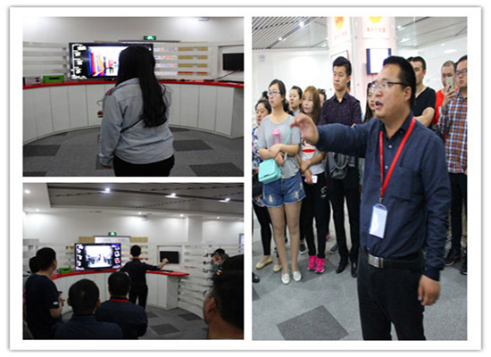 参观完教学区,走进当下最流行的虚拟现实体验区,到访的人员被虚拟试衣间所吸引,在高总的演示后,纷纷上前进行体验。